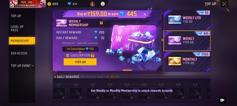 Con la Membresía Diamante, el beneficio principal se pierde si no se reclama la recompensa diaria de diamantes cada día, por lo que se debe priorizar el inicio de sesión.